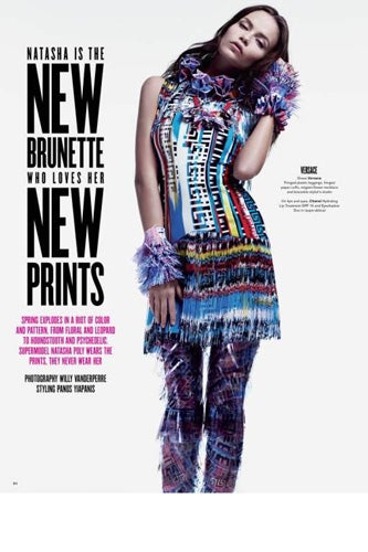 Natasha Poly keeps busy in heavily-printed attire for the most recent V Magazine, rocking her new brunette 'do and a host of hyper-festive outfits. Eccentric textures and theatrical repose create a post-modern aura of overkill luxury and a little taste of rebellion, as she stands wrapped in Christopher Kane's neon contours, Prada's botanical flare, and Givenchy's fierce animal prints. Showing no signs of matching, paying little mind to reason, her imaginative attire could easily outfit the full-speed-ahead, stylish woman-of-tomorrow. And like the woman-of-tomorrow, despite the intensity of the threads, Natasha remains the star of the show.