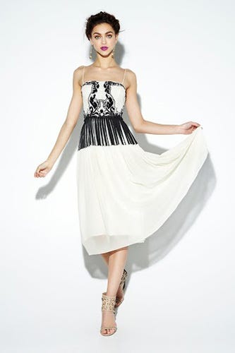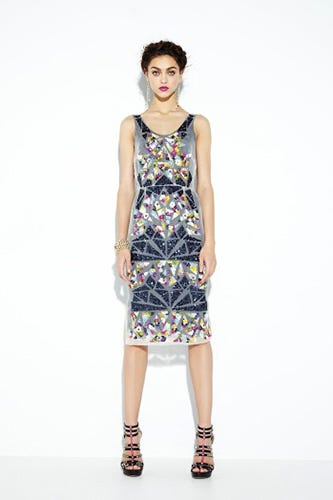 The fashion house throws back to the elaborate styles of the French Revolution with eye-catching patterns and vivid colors that call to mind shattered glass and garden mazes. It's a tough-luxe kind of glamour, a new look for Nicole Miller and a welcome break from all the whimsical florals and pastels of spring (not that there's anything wrong with them!). We combed through the new lookbook and picked our favorite styles. Just add a pair of tights and boots, and you can rock these pieces without even waiting for this latest cold snap to end.