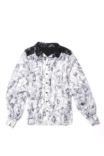 romantic 'n' graphic black-and-white blouse she debuted at an exclusive preview.
