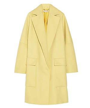 Start incorporating the delicate hues into your outfits now. You'll be hard-pressed to find something springier than this soft, dandelion-yellow coat. (You can also try mints, blushes, or baby blues for the same effect.) And, since this season is all about wearing pastels from head to toe, team your boyfriend-fit topper with powder-pink pants and tonal accessories for a look that's totally chic without feeling overly try-too-hard. The temperatures will follow suit — eventually.