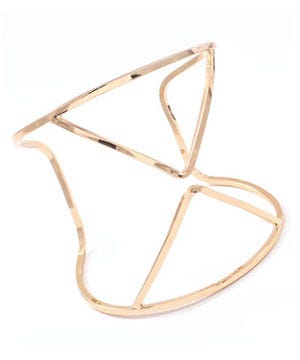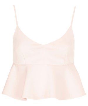 Topshop Neoprene Peplum Bralet, $36, available at Topshop; Alexander Wang Cropped High-Waisted Mélange Wool Pants, $750, available at Net-A-Porter; Zara Leather Wedge Court Shoe, $129, available at Zara; ASOS Leather Soft Clutch Bag With Metal Bar, $49.87, available at ASOS; Modern Citizen Double-Bar X Cuff, $39, available at Modern Citizen.