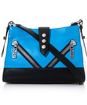Photo: Courtesy of Kenzo.Kenzo Kalifornia Bag, $1,185, available at Opening Ceremony; River Island Light Pink Cropped Jacket, $50, similar style available at River Island; Topshop Charcoal Gingham Mini Kilt Skort, $68, available at Topshop; Forever 21 Electric Floral Crop Top, $19.46, available at Forever 21; Acne Studios Lark contrast-trim leather brogues $570, available at Net-A-Porter; Quay Australia Charlie Sunglasses, $39.95, available at Quay Australia.