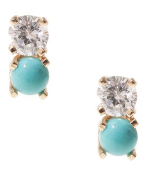 By now, you know we're huge advocates of mismatched prints. So, it's only fitting that we'd source our latest inspiration from Erin Beatty and Max Osterweis, Suno's mix masters and creative directors. For spring, the duo brought a distinctly safari feel to the catwalk, sending out models in artfully printed midi-skirts, khakis, and wide-brim raffia visors. But, if you're worried such a look (like the one below) will read too ostentatious, you needn't be! Just choose patterned clothes that offer a subtler color palette. By doing so, you'll create an outfit that's completely on-trend and wearable beyond the runway. Here, our bottom halves play with pastels and cobalt blue, while the graphic top keeps calm in basic black and white. To finish, accent with another fave trend: fringe! Giles & Brother's gold statement earrings are just the ticket.