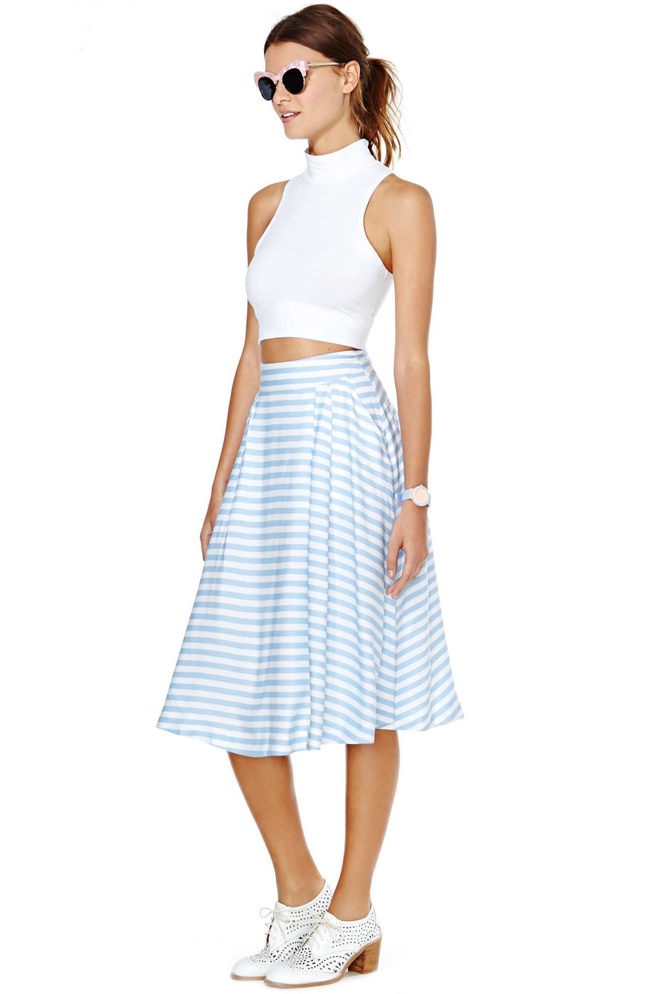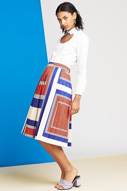 When you think of pleats, flashbacks of your grandma's closet or your school librarian probably flood your brain. The paneled look has never really been associated with the "cool" set. That is, until the runway bigwigs like Proenza Schouler and Suno re-imagined the pleated skirt for summer with flashy colors and eye-catching graphics. So, to help you get in on the look, we rounded up 15 of these sharp iterations for your shopping pleasure. Whether you choose to wear them to work with a blouse or on the weekends with a tee, we promise you'll be a big fan of the styles ahead.