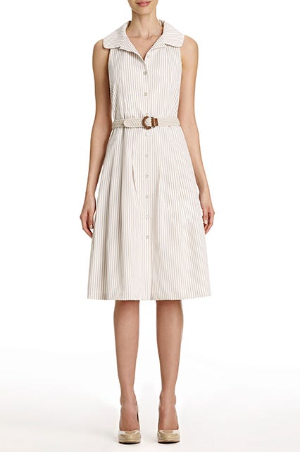 Until someone figures out air-conditioned garments, or public nudity becomes workplace acceptable, there are a few sartorial solutions that are the best way to keep your temperature down this time of year. Our simplest trick is switching in lightweight and airy fabrics. So, we collected a few options worthy of your professional wardrobe that are all size 14+ and are sure to work overtime to keep you cool. If your dress code permits crop tops and short-shorts, you can always take the less-is-more approach to summer dressing. If not, click through to see our promotion-worthy picks.