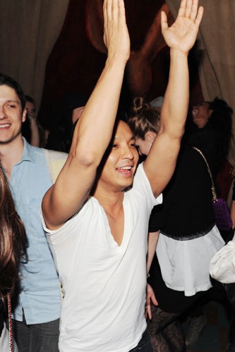 We're going to call it—Prabal Gurung's after-party for his fall '11 show clocks in as one of the off-the-wall funnest fetes of Fashion Week so far. The first event thrown at what can't but help be NYC's hottest new spot, Mister H (note, no prostitutes allowed) at the not yet-opened Mondrian Hotel, was a relatively intimate affair, with a drama-free door that was a nice change of pace from some of the weekend's crazier ragers. That's not to say the energy inside wasn't fully charged—Prabal would be a shoe-in on Dancing With The Stars, that's how impressed we were his stellar moves last night. Of course where Prabal goes, others soon follow—by 11 p.m. Taylor Tomasi Hill, Meredith Melling Burke, and Brad Goreski were all swinging to Mia Moretti's even-better-than-usual beats (uh Ginuwine's My Pony anyone?), photog Billy Farrell was snapping from tables, and Belvedere-and-sodas disappeared faster than Gurung's last collection. If the scene looked familiar, it's because it was: Mister H is the brainchild of Armin Amiri, whose days at Bungalow 8 could probably fuel a best-selling series. Indeed, when Britney Spear's "Hold It Against Me," came on, we felt like we could have switched it out for "Im A Slave 4 U", grabbed a watermelon mojito, and made three new best friends. And it happend—our kinda faux fight over a Britney diss had Prabal stepping to the rescue: "Hey, hey, no fighting guys. It's all about peace and love." When arguably the nicest designer tells you to relax, well, that's just what you do...best believe we made a new friend too!