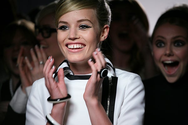 Scoring yet another major gig, Georgia May Jagger is a vision as she channels Twiggy for Rimmel London’s latest campaign. Though famous for her gap-toothed smile, this time, it’s actually her eyes that are doing the talking, framed with heavy “bambi-style lashes” and graphic liner flicks.