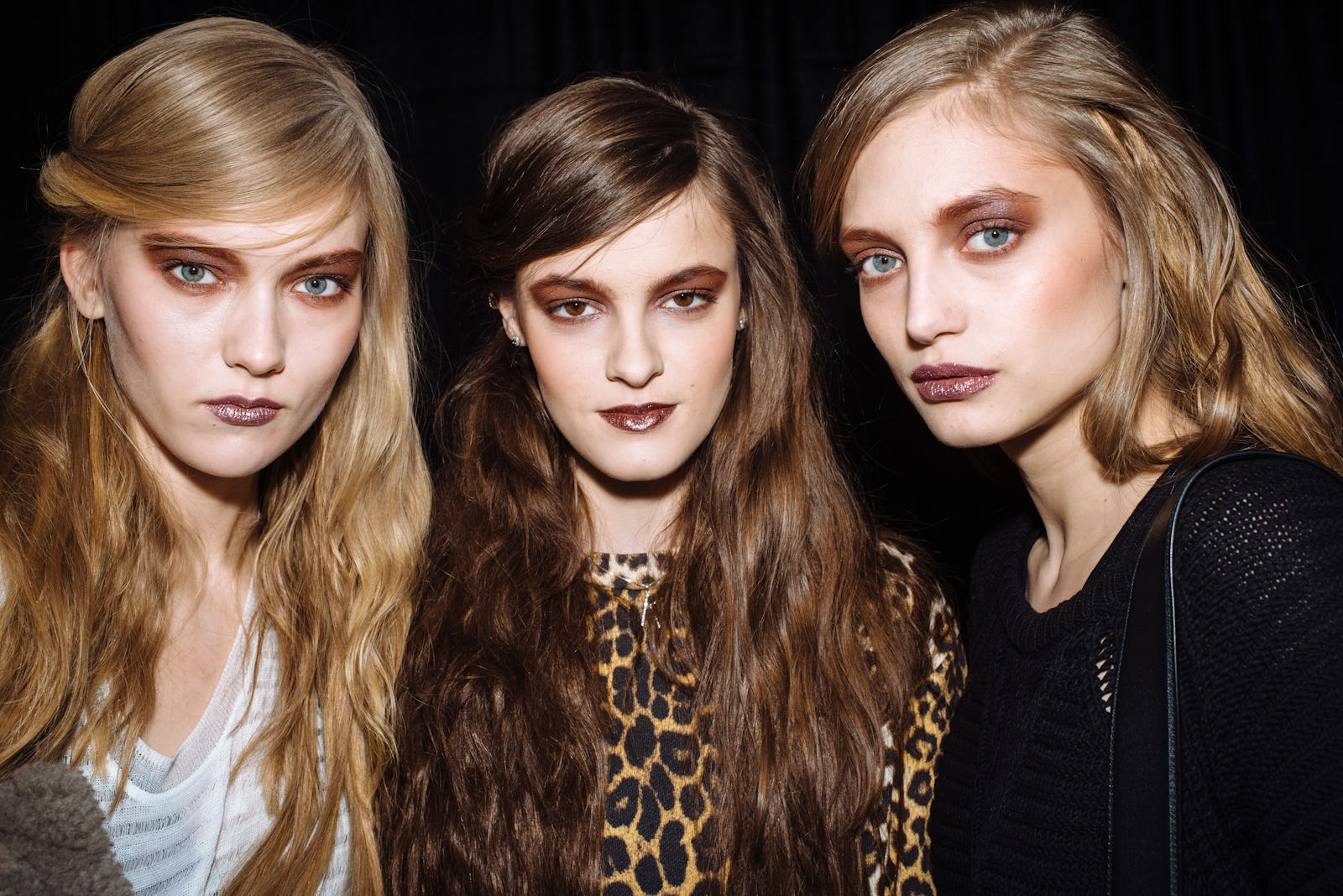 We didn't get more than two steps into Rodarte's backstage before we were ambushed by quite possibly the most beautiful hair we've seen all Fashion Week. Design duo Kate and Laura Mulleavy were inspired by childhood nostalgia, which makeup artist James Kaliardos and hairstylist Odile Gilbert combined with a touch of the '80s. The resulting look made everyone of a certain age immediately feel like the team had raided their youth for inspiration.