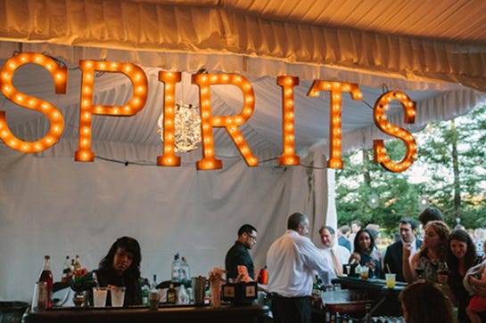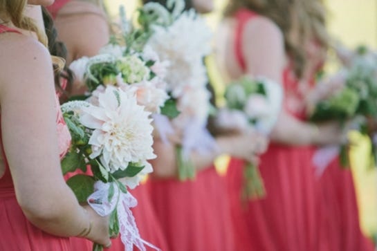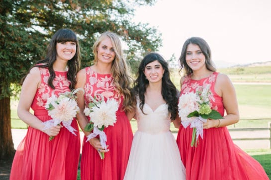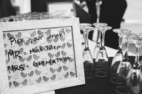 This California couple jokingly referred to their wedding as “rustic-chic-meets-vintage-barn with a French countryside twist.” They wanted everything to look pretty, easy, and feel like "them," — their decor actually came from their apartment and their DIY details (including the wooden flower boxes, the "SPIRITS" marquee, and the send-off flags) helped them personalize their celebration further. The beautiful bride had this to say about the special day: "My favorite part of my wedding day and my life is standing at the altar. I took a breath and looked at the crowd filled with all the people I love in this world, turned all the way around to look at my beautiful bridesmaids who are more like sisters than friends, and finally looked at my main man. This guy that I love more than what feels like all the love in the universe is about to become all mine. I’m actually surprised I didn’t pass out or fart — it was too much happiness for one human body to compute!"