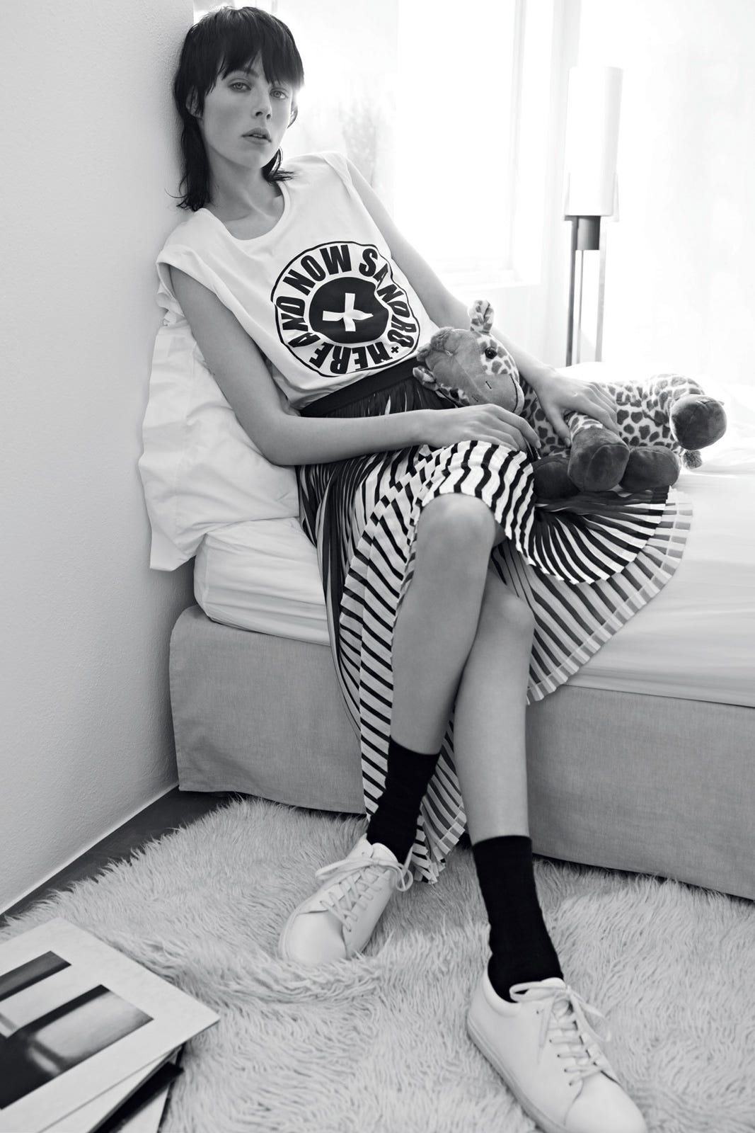 It's said that the indicator of a truly stylish person is what she wears when she's at home, by herself, with no plans before her. Chances are, your answer probably looks a lot more like ours (sweatpants, Hanes tee, and spa socks?). But, if you don't have a New Year's style resolution yet, maybe this Sandro lookbook will inspire you to try a little harder during your lazy Sundays. Shot by Karim Sadli, the images feature Edie Campbell and Elliot Vulliod in some comfy-cozy getups (though, the shoes on the bed did make us stop and think for a moment).