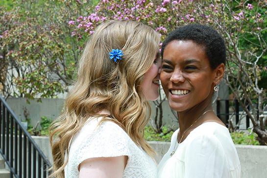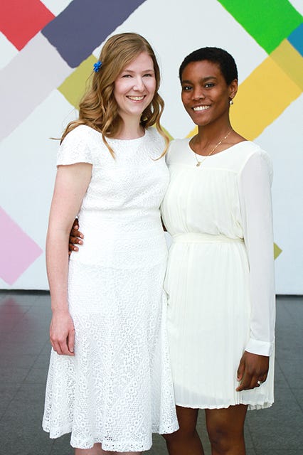 After the MCA announced the initiative via social media March 21, it was immediately flooded with applications from more than 100 couples vying for the opportunity to tie the knot at the iconic venue. The staff quickly set to work narrowing down the list alongside a panel of representatives from Equality Illinois. “We received submissions from enthusiastic couples who have been together for years and for some, decades,” says MCA Chicago spokesperson Karla Loring. “We focused on a group that reflects the diverse fabric of Chicago and Illinois.”