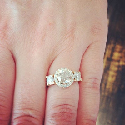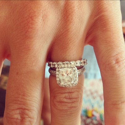 I know we are all liberated feminists who scoff at any kind of relationship that resembles a 1950s June Cleaverish, dinner-on-the-table-by-six-or-else situation. But when it comes to proposals, why do even the most free-thinking badasses want their one and only to get down on one knee with a diamond ring? Maybe it has to do with the fact that, in our insanely fast-paced culture of Instagrams and instant gratification, it's rare that anyone takes the time to honor a tried-and-true tradition that existed way back when our great-great-grannies wouldn't show their petticoats in public. So, let's all make a pact to not feel guilty for wanting our boo to surprise us on bended with ring, roses, and bubbly. Here's how it went down for some of our fave Stone Fox Brides who walked into the showroom flaunting their bling.