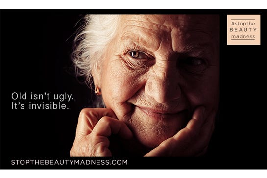 Contradictory images? Maybe, but they speak to a larger issue in the beauty industry. "Even if you fit the mold, you get in trouble for fitting the mold," Robin Rice, Stop The Beauty Madness' founder, told The Huffington Post. "You can't win." That's the truth across all aspects of the industry, which is why Stop The Beauty Madness takes a sweeping approach. "Naturally thin women, or women who choose to work out and have really buff bodies, or elderly women, are not excluded from this conversation," Rice explains. "They get their own backlash."