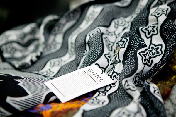 Never has "swoon" been a more appropriate word than in the context of Suno (and the alliteration helps too), the two-year-old label from designers Max Osterweis and Erin Beatty. Off-the-wall color, mind-tripping prints, and ecclectic Indian textiles make Suno's pieces one signature that always stands out from the pack. Plus, you can feel damn good about looking good; the brand's all about fostering sustainable development in Kenya, 70% of production takes place in the country and helps to nurture local artisans. So, you can imagine their Garment District studio has to be a space where even Peter Beard would take a moment of silence. And that it is—Max and Erin (who also happen to be pretty stunning themselves) opened up their office doors to take us on a private tour of their design digs, and our retinas are still reeling. From a first look at resort '12 (oh those patterns!) to their inspiration boards, not to mention four aww-worthy dogs, get ready to—pardon the cheese—swoon-o.