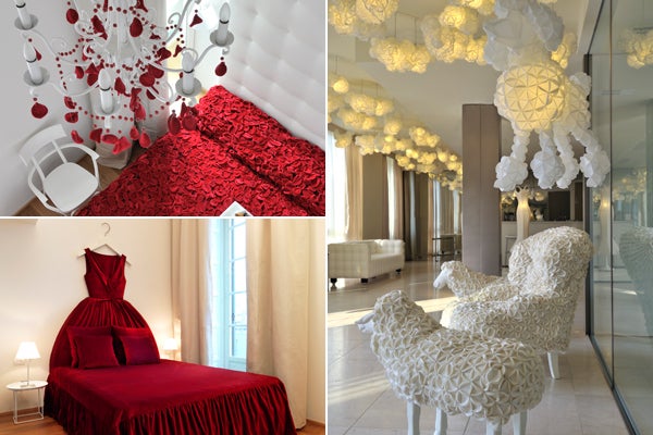 While it’s true that there’s no place like home, we'd like to offer up another maxim: There's no place like a designer hotel, especially when the line-up includes lavishly designed spaces by fashion heavyweights such as Christian Lacroix, Missoni, Diane Von Furstenberg, Moschino, Armani, and Versace.
