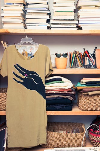 And, so is it any surprise that Vena Cava's aesthetic extends to the designer's wardrobe, too? Among Buhai's belongings, we found a seriously mean collection of vintage jewelry and one-of-a-kind accessories, including a bracelet Buhai made herself from beads collected from junk shops in the Valley. But, it's not just about vintage for the designer. According to her closet, Buhai also a serious weakness for Isabel Marant, Prada sandals and Céline bags. Oh, and just in case you required any further proof that VC is literally the best thing ever? Allow Buhai to describe the Vena Cava girl in her own words. "[She] likes road trips, sculpture parks, flea markets, botanical gardens, '70s cinema, and '90s simplicity. She likes to reference the past, but always feels current." See what we mean?