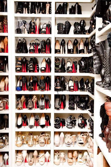 You all know this face — she’s one of third of the dark-haired chameleons also known as The Kardashian sisters. Khloe Kardashian, who let us inside her vast closet, has, as you can see from the images, one hell of a dedication to Christian Louboutin. Seriously — this is a collection that is to be rivaled for sure. But, she treats her sartorial babies with precise care and organization and is never one to choose a favorite. “I love ALL of my shoes! It is a must to have them color-coordinated and to be able to see each and every one of them! I know exactly where each one lives and I can tell if one has even been moved,” she says. At least we now know not to mess with her plethora of red-soled pumps.