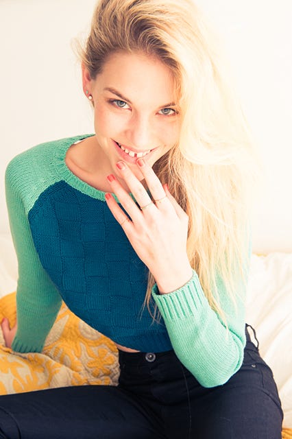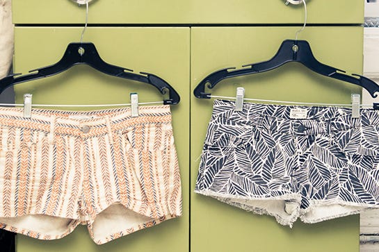 Since being discovered (appropriately) at SXSW five years ago, Smith has been shot by everyone from Ellen von Unwerth to Sølve Sundsbø and Mert Alas and Marcus Piggott. Naming Lauren Hutton as her modeling hero (gap-toothed beauties, unite!), Smith has that same kind of untouchable coolness as her mentor. Suffice it to say, after watching her strike pose after pose (she can go from teenage ingénue to leggy sex kitten in one frame, you guys) for our photog Jake, we quickly got that she kind of has the whole portrait thing down pat, leaving us to our own devices when it came to sorting through her enviable collection of goodies. To keep it simple, let’s just say that those old (and kind of, well, hackneyed) model-off-duty rules do not apply to Smith. If it wasn’t obvious with her scarf-printed, high-waisted hot pants and holographic lug sole brogues, one glance at her collection of fluorescent wigs made it more than apparent. It makes sense, then, that her collection for RVCA, her first of six (she’s no flash in the pan), isn’t your standard street wear uniform of black jeans and white T-shirts. “It’s purely based on my essentials,” she told us. And, essentials in Ashley Smith World mean varsity cardis, pleated minis (paired with requisite knee socks), cropped sweaters and leather biker vests. When the collection becomes available to the masses (that printed sleeveless maxi dress will be ours), prepare yourselves for a little Ashley Smith-style boldness. After all, this is a girl who went by the nickname Skittles in high school. Because of her multicolored hair, of course. It’s a little thing called individuality. See what we mean by the whole breath of fresh air thing?