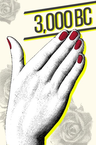 The next time you pull that bottle of nail polish out of your medicine cabinet, think about how people have been engaging in that exact same ritual for 7,000 years now. That's right — the history of nail polish (or nail art, to be exact…read on and you'll see!) is a long one, and full of ups and downs, blingy accoutrements, Victorian chaste, Eureka moments, and dull spans of non-inspiration.