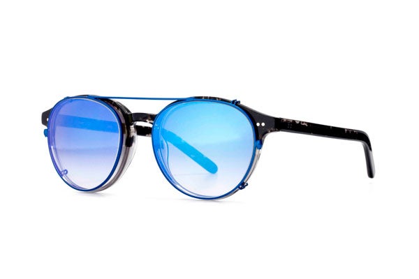 Well, we normally turn to Thierry Lasry in moments like these; the brand basically started the printed-frame trend a few years back, and has pioneered awesome-but-practical designs for people who want to look cool but not weird. Thierry Lasry's newest collaboration with Garrett Leight is inspired by its two homes — Paris and Los Angeles — and uses classy, retro shapes and makes 'em over with colorful, futuristic materials, design elements, and surprising add-ons.