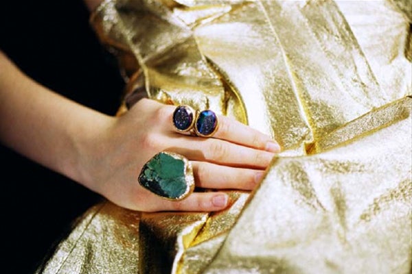 Urban Outfitter's Jewelry Studio lookbook teaches us how to add some spice and panache to the ordinary. Each image highlights a different jewelry designer who is working with Urban Outfitters this season, and shows how the simple addition of a bar ring or a rope necklace can transform an outfit. Our favorite items are Dara Ettinger's two, purple stone, gold ring that shimmers and shines, and Sabrina Dehoff's large, woven bracelet accents with sizable gems. Plus, Kava Gorna's stunning shots make these photos nearly frame-worthy. Click through for all the pieces.
