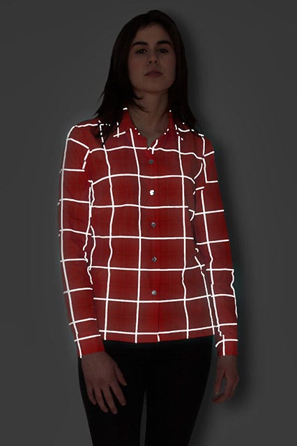 While you may already use reflective gear (neon tape, bike lights, etc.), you probably wouldn't classify the lot as the most stylish of add-ons. So, Haute Réflecture by Vespertine is here to change that with head-turning reflective wares like vests, belts, jackets, and even dresses that are equal parts stylish and practical. The brand’s NYC-based designs are made from 100% recycled and recyclable polyester and will make you visible from within 2,000 feet of a car’s headlights thanks to its 3M Scotchlite materials. Now, that's reflective. See what we’re talking about here, or click through to check out a select offering. It's time to be seen, people.