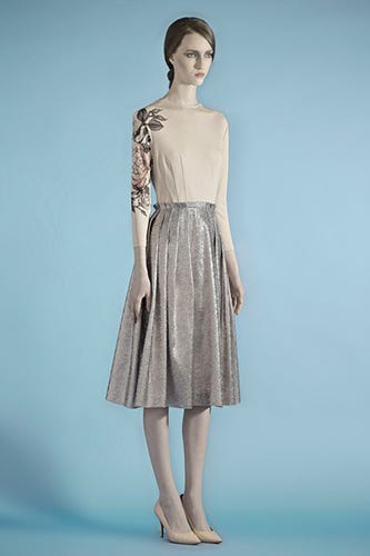 We're not usually ones to point fingers. But, should we have to explain why the idea of tattoo-printed clothing causes us hesitation, our digits would be directed toward Christian Audigier's early aughts sartorial creations. That said, we've found an answer to no-needle-needed body art in the fall '14 collection for Vika Gazinskaya.