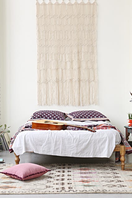 The handmade, one-of-a-kind pieces do fall on the pricey side, but they also have heirloom potential. We found four variations that nod to the far-out decade that introduced them, but in fresh shapes and threads that feel very now. For the budget-conscious redecorators, there's even a bright, affordable DIY just daring to be tried. However you come by it, the trend is definitely here to stay. All that one-dimensional artwork deserves a rest, anyway.