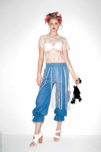 We await Opening Ceremony's lookbooks with bated breath and quivering bank accounts, 'cause every season they deliver pieces that are ridiculously covetable. Their spring '11 lookbook is no different, presenting a collection that has us going cray-cray for eye-popping prints and cooly simple cuts. Snapped by Terry Richardson and featuring models of the moment Lindsey Wixson and Paolo Anchisi, the lookbook features fringed persimmon dresses, diaphanous skirts, and crocheted tops that have us drooling. The guys haven't been forgotten either, with attention-grabbing pin-striped suit separates rendered in lilac and navy, printed shorts, and lust-worthy footwear. Our pick? The his-and-hers medallion motif tees, blazers, and shorts that are so damn awesome we might just have to wear them head-to-toe come spring time!