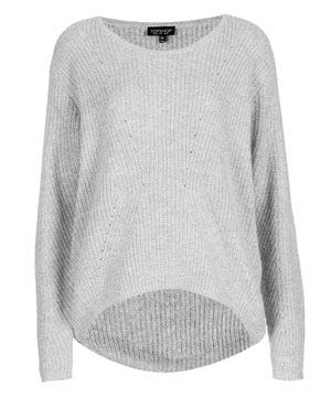 Topshop Knitted Rib Textured Jumper, $76, available at Topshop; Mother of Pearl Volta Frill Skirt, $446.87, available at My-Wardrobe; Madewell Silk Twinklelight Collar Tank, $79.99, available at Madewell; Vans Metallic Slip-On Sneaker, $59.95, similar style available at Nordstrom; giantLION Shark Tooth Cuff, $120, available at giantLION; Nasty Gal Lucid Dreams Satchel, $68, available at Nasty Gal.