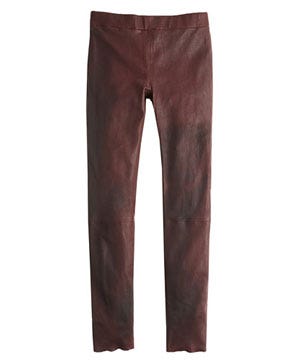 Uniqlo Long Trench Coat, $89.90, available at Uniqlo; Zara Checked Top, $69.90, available at Zara; J.Crew Collection Leather Leggings, $625, available at J.Crew; Clinique Nail Enamel in Black Honey, $12.50, available at Sephora; Sophia Webster Daria Leopard Heel, $395, available at Kirna Zabête; alice + olivia Olivia Embossed Satchel, $495, available at Shopbop.