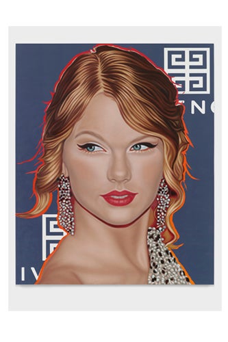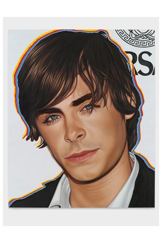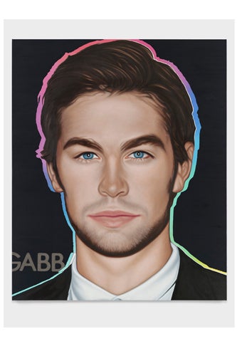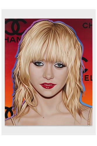 Okay, we're coming clean: We read Us Weekly. While we're not proud of our dirty little secret, celebrity intrigue and paparazzi photos are our preferred way of passing a flight. But there's a marked difference between looking at stars in glossy form and staring at them immortalized in six-feet-high canvases, the latter of which is exactly what NYC artist Richard Phillips is trying to bring into our homes. In the new exhibit, "Most Wanted," now on at London's White Cube Hoxton Square gallery, the painter (you might recognize his work from Gossip Girl) selected 10 of the world's most recognizable celebrities to create "distilled portraits of young, powerful stars," caught against the back drop of luxury branded "step and repeats," where notables pose against logo-ed out backgrounds. With shades of Andy Warhol—the multi-color halos