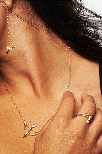 With the help of NY-based artist, Modesta — and her grandmother's heirloom pieces — Zoetik's MZ collection is part dainty links, part modern-day body armor, and all antique-inspired. Chains drape over shoulders, and bow and arrows offset the gracefulness of hummingbird pendants. Like the rest of its trinkets in the line, the recently released wares are made from rhodium-plated gold and silver (so they won't turn your skin green, thank goodness). Plus, they're delicate enough to layer together or simply wear alone. Every day. And, never take off.